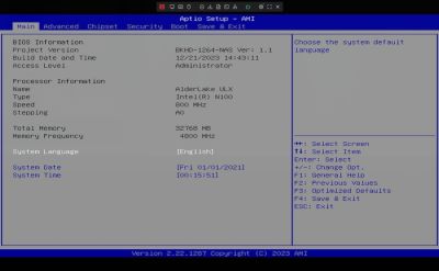 | BIOS | AMI Aptio V (version 2.22.1287 on units shipped late 2023) |